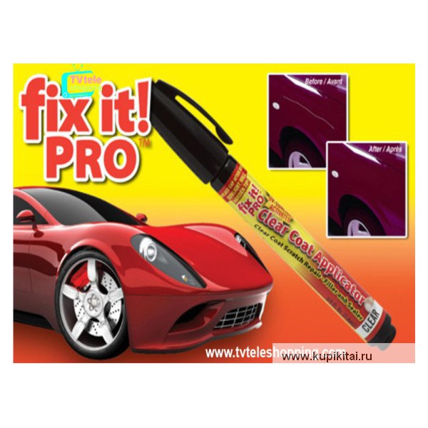 Fix It Pro Pen - революционный жидкий прозрачный лак, который содержит ультрафиолетовые отвердители, позволяющие ему заполнить царапину по ее уровню и скрыть царапину полностью. Карандаш Fix It Pro является самым быстрым средством для удаления царапин на автомобилях, он безопасно ремонтирует царапины на автомобиле. Fix It (Исправь это) и забудь о ней! Карандаш Fix It Pro единственное средство для удаления и ремонта царапин, которое Вам когда-нибудь понадобится для безопасного удаления царапин, потертостей и дефектов лакокрасочного покрытия любого автомобиля. Простое применение Fix It Pro прямо на поверхность Вашего автомобиля сразу даст положительный эффект в устранении царапин и потертостей. Экономия времени и средств. Нет необходимости отправлять ваш автомобиль в ремонтную мастерскую каждый раз, когда Ваш автомобиль получает царапину. Вы можете сделать это сами и добиться состояния профессионального устранения царапин каждый раз. Fix It Pro это не только средство для автоматического удаления царапин краски автомобиля. Если вы когда-нибудь задавались вопросом, как удалить царапины на поверхности из нержавеющей стали и восстановить его в исходное состояние, Fix It работает! Помните, что это не только автоматическое удаление царапин краски. Видите, на ваших глазах, Fix It Pro автоудалитель царапин работает. Микроскопические полирующие компоненты входят в состав Fix It Scratch Remover, они глубоко проникают в краску для возврата блеска в исходное состояние. Быстрое действие формулы с миллионами микроскопических агентов для полировки, которые заполняют царапину до полного восстановления краски вашего автомобиля к первоначальному состоянию и блеску.